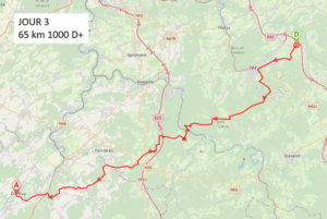 Nous ferons des étapes entre 50 et 70 km, parfois avec du dénivelé. Le rythme se veut tranquille et pas de compétition. Les sentiers seront en priorité sur chemins sécurisés (hors voie rapide), parfois asphaltés parfois en terre. Il n’y aura pas de sentiers techniques réservés aux vététistes entraînés.
