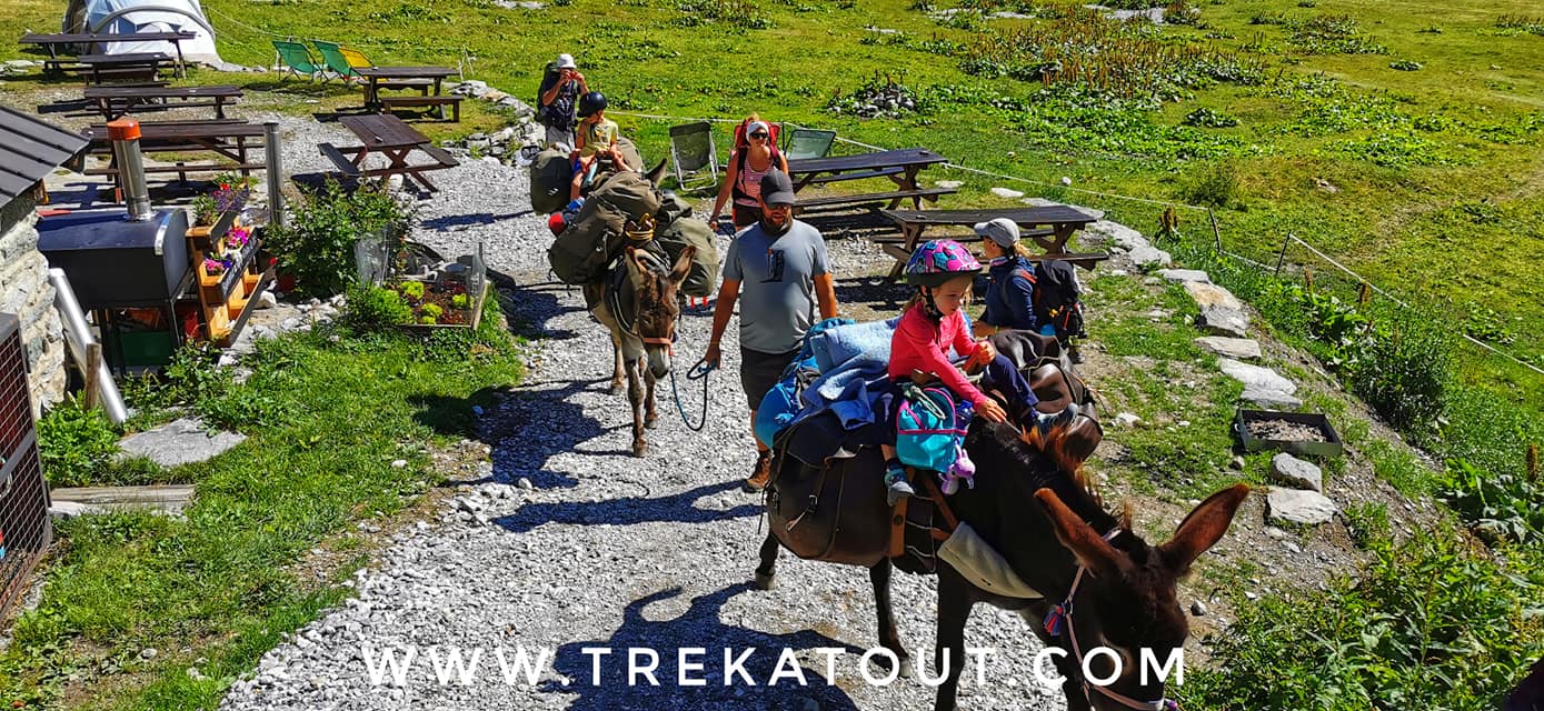 Aux portes et dans le Parc National de la Vanoise, Trek A Tout vous propose un séjour de 4 jours, pour vous et vos enfants en pleine montagne, accompagnés d’ânes de bât. De cette façon, vous pourrez prendre un certain nombre d’objets pour le confort. Et vos enfants, lorsqu’ils seront fatigués, pourront monter sur nos compagnons à 4 pattes le temps d’une petite pause. Ce qui vous permet de profiter en famille de cette magnifique expédition.